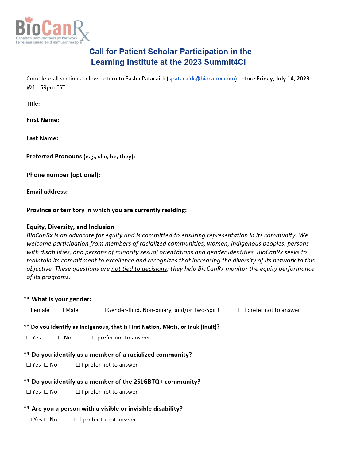 – a highly qualified personnel (HQP) working or studying in the cancer immunotherapy field, which includes students, post-doctoral fellows, research associates and others engaged in research.